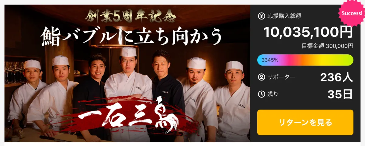 このプロジェクトは、2025年11月20日から12月30日まで公開されており、特別なリターンが用意されています。詳しい情報は、