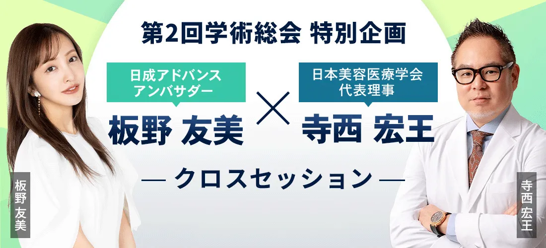 この学術総会では、特別企画として元AKB48の板野友美さんが登場し、寺西宏王代表理事とのクロスセッションが実施されます。美容医療とエンターテインメントという異なる分野での経験を持つ彼らが「努力の継続」や「社会における役割」「個人の成長と発信力」について語り合い、新たな視点を提供します。