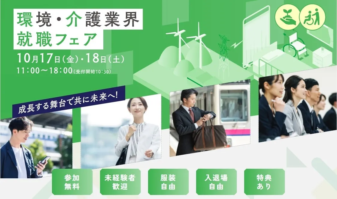 東京の中心、東京ドームシティにて、2026年3月卒業予定者や就職を考えている一般求職者を対象にした「環境・介護業界就職フェア」が10月17日(金)と18日(土)に開催されます。このイベントは、東京都の主催であり、約110社の企業が参加し、皆さんの就職活動をサポートします。