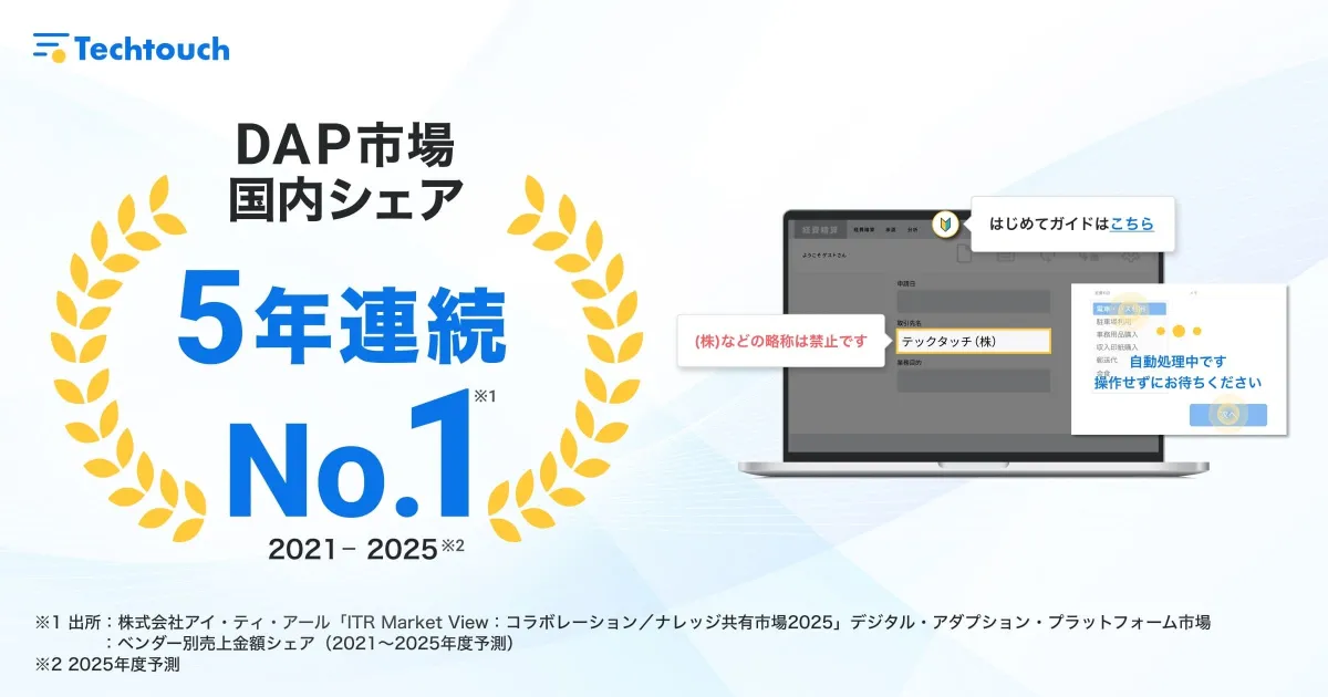 テックタッチ、DAP市場で5年連続売上高1位を達成した理由とは?
