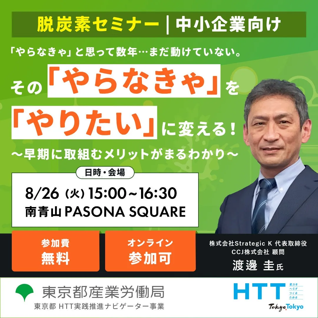 脱炭素経営は、現在企業にとって避けて通れない重要な課題です。特に中小企業においては、外部からの圧力だけでなく、自らの意識を高めることが求められます。そこで、令和7年8月26日(火)に東京都で開催される「脱炭素経営のMUSTとWANT ~「やらなきゃ」を「やりたい」に変える~」という無料セミナーに注目が集まっています。このセミナーは、脱炭素経営を始めたい経営者やその担当者に向けて企画されています。