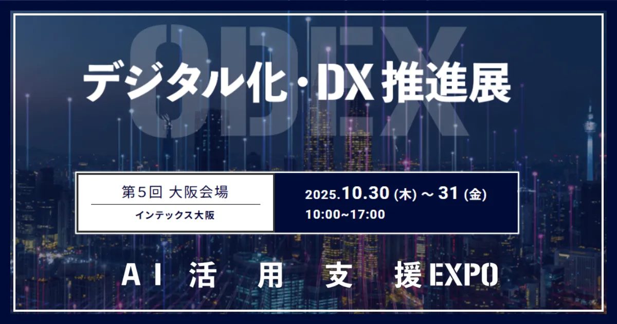 AIポータルメディア「AIsmiley」を運営する株式会社アイスマイリーが、2025年10月30日(木)から31日(金)の2日間、大阪のインテックス大阪で行われる「第5回 デジタル化・DX推進展【大阪】」にブース出展します。デジタル化やDX推進を目指す自治体や企業の皆様を対象に、最新のAIソリューションや業務効率化の手法を紹介し、具体的な相談にも応じます。