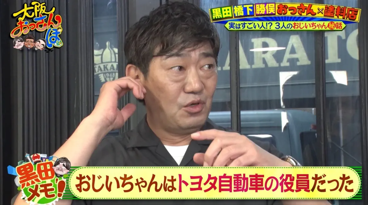 このタカラ塗料、実は創業者の祖父との絆が深いというエピソードが明らかになります。黒田氏も自らの祖父の驚くべき経歴を語り、トヨタの取締役として活躍していたことを打ち明けます。この話には、勝俣氏や橋下氏も驚愕。自分達の祖父たちの話に花が咲き、彼らが生きた時代への思いが伝わります。