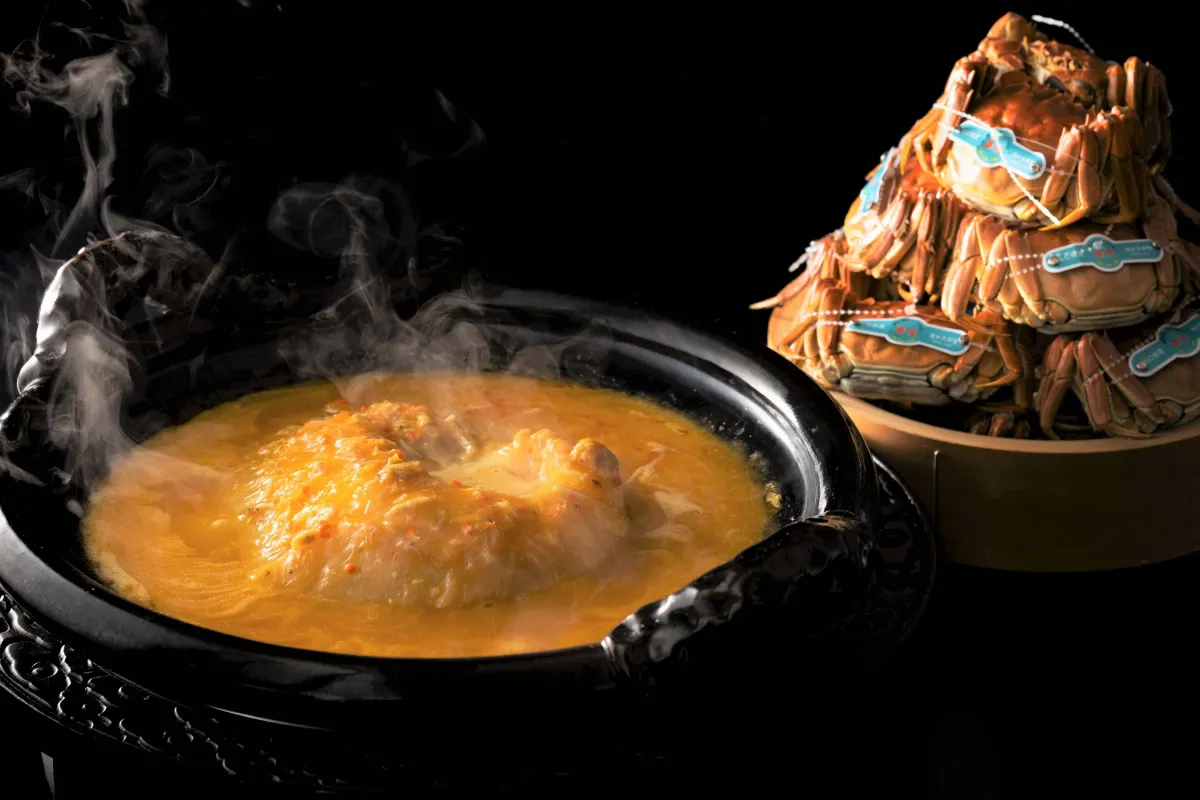 秋の到来を告げる上海蟹は、その独特な風味から多くのグルメに愛されています。限られた漁獲量で古くから重宝されてきた中国の貴重な食材であり、最近では世界中の美食家たちを惹きつけています。特に濃厚な蟹味噌と引き締まった身は、蒸し蟹として提供されるのが一般的ですが、星ヶ岡では、上海蟹を使った多彩な料理が用意されています。