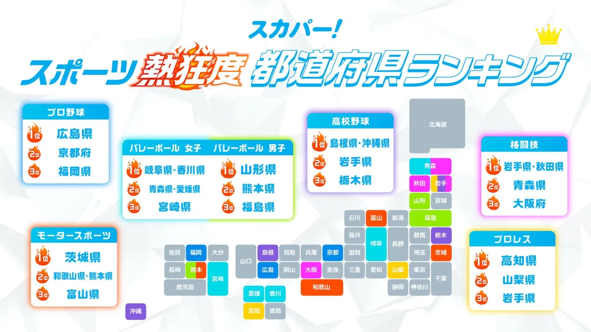 10月13日(月・祝)は、スポーツの日。この日を迎え、スカパー!が実施した「スポーツ熱狂度ランキング2025」をもとに、全国の都道府県ごとのスポーツ熱を探ってみましょう。このランキングは、観戦頻度やSNSでの対外発信、観戦にかける費用の3つの項目から算出されたものです。