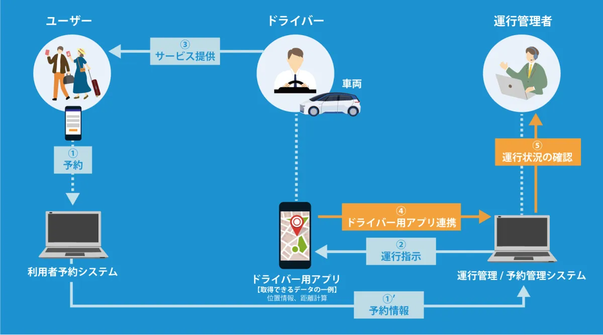- - 運行支援システムの提供: 利用者向けの予約システムやドライバーアプリを統合し、効率的な運行管理を実現します。
