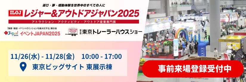 「レジャー&アウトドアジャパン2025」は、東京ビッグサイト東展示棠で開催され、主催はTSO International株式会社です。事前登録が必要ですが、入場は無料です。新しいビジネス機会やプロジェクト発展のインスピレーションを得るためにも、ぜひ当社のブースにお立ち寄りいただきたいと思っています。