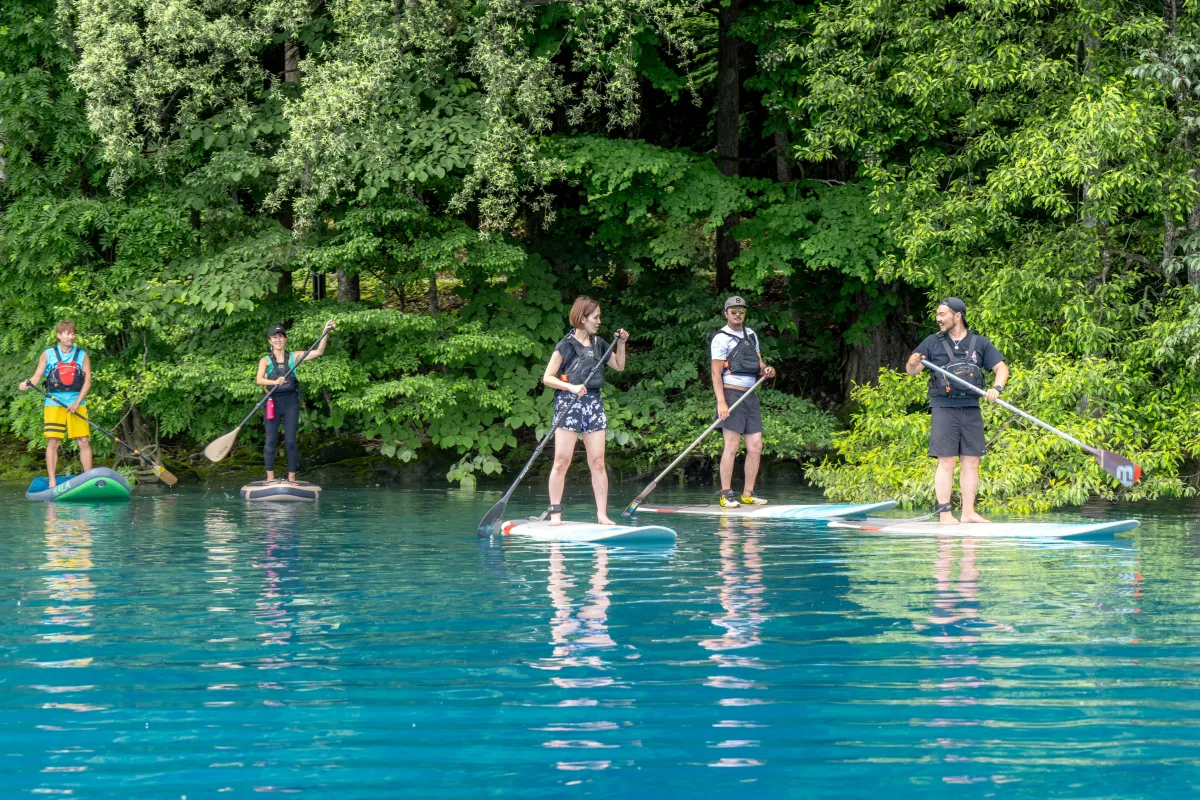 さらに、この夏だけの特別体験として、宿泊者限定のSUP(スタンドアップパドルボード)ツアーも開催しています。1日1組だけのプライベート体験として朝日を浴びながら湖面を paddle することができ、忘れられない景色を楽しむことができるでしょう。初めての方でも安心のサポート体制が整っており、家族全員で参加できます。経験豊富なインストラクターのもと、安心して朝の田沢湖を楽しむことができます。