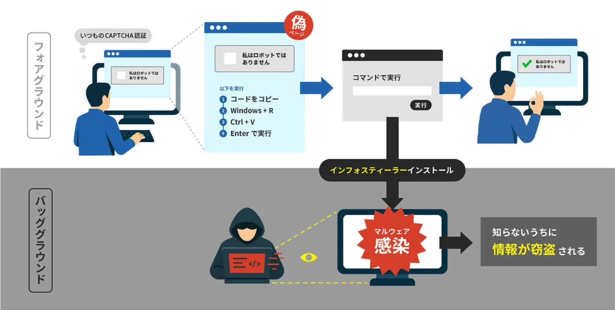 最近、サイバー攻撃の手法として急速に拡大している「ClickFix(クリックフィックス)」が注目を集めています。この攻撃手法は、ユーザーを騙すために偽のCAPTCHA認証を利用し、ショートカットキーやPowerShellコマンドを入力させることで、最終的には情報窃取型マルウェア(インフォスティーラー)を感染させるという特徴があります。特に、被害者が必ずしもリテラシーの低い層でない点が、この手法の厄介な側面です。