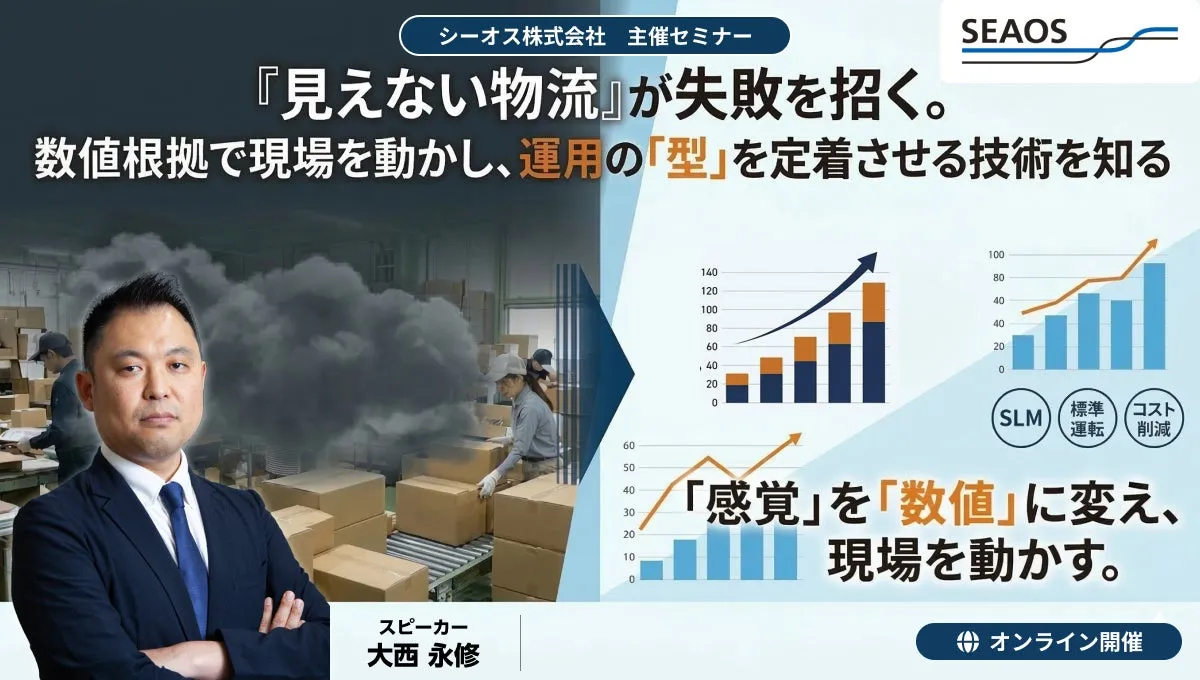 2026年4月28日(火)、シーオス株式会社が主催するオンラインセミナー「見えない物流」が失敗を招く。数値根拠で現場を動かし、運用の「型」を定着させる技術を知るが開催されます。このセミナーでは、物流プロジェクトが停滞する要因として挙げられる「共通言語の欠如」について、具体的な解決策を提供します。