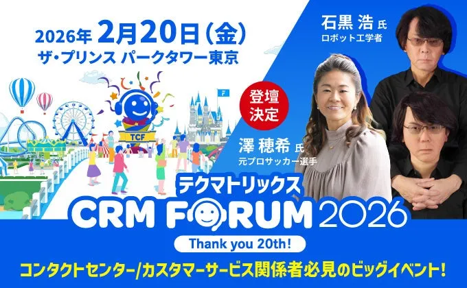 テクマトリックス株式会社が主催する「テクマトリックスCRM FORUM 2026」が、2026年2月20日に東京のザ・プリンスパークタワーで開催されます。このイベントは、コンタクトセンターやカスタマーサービスに関わる業界関係者にとって、必見の内容が盛りだくさんです!
