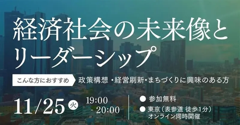 このセミナーは、2025年11月25日(火)の19時から開催されます。会場は東京都港区の社会構想大学院大学で、表参道駅から徒歩1分というアクセスの良い場所です。また、対面形式だけでなくオンライン同時配信も行われるため、参加しやすいです。