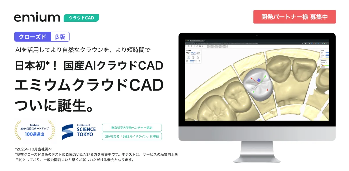 エミウム株式会社は、日本の歯科業務を支援する最新の技術「エミウム クラウドCAD」のクローズドβテスト版を2025年11月から提供することを発表しました。このサービスは、日本人の口腔スキャンデータと歯牙形態データをAIが学習し、日本人の特性に調和した自然なクラウン形状を自動で設計することを目的としています。特に注目すべきは、このようなAIによる自動設計機能が日本企業として初めて完全自社開発された点です。この革新的なサービスは、歯科医療の効率化とデジタル化を推進する新たな道を開くでしょう。