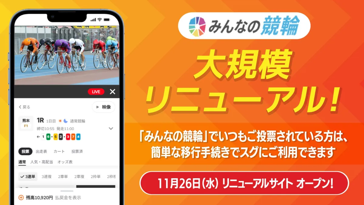 競輪ファンの皆さんに朗報です!競輪投票サービス「みんなの競輪」が、2025年11月26日(水)に大規模なリニューアルを実施しました。このリニューアルにより、ユーザーの皆様がより快適に競輪の投票を楽しめる環境が整いました。
