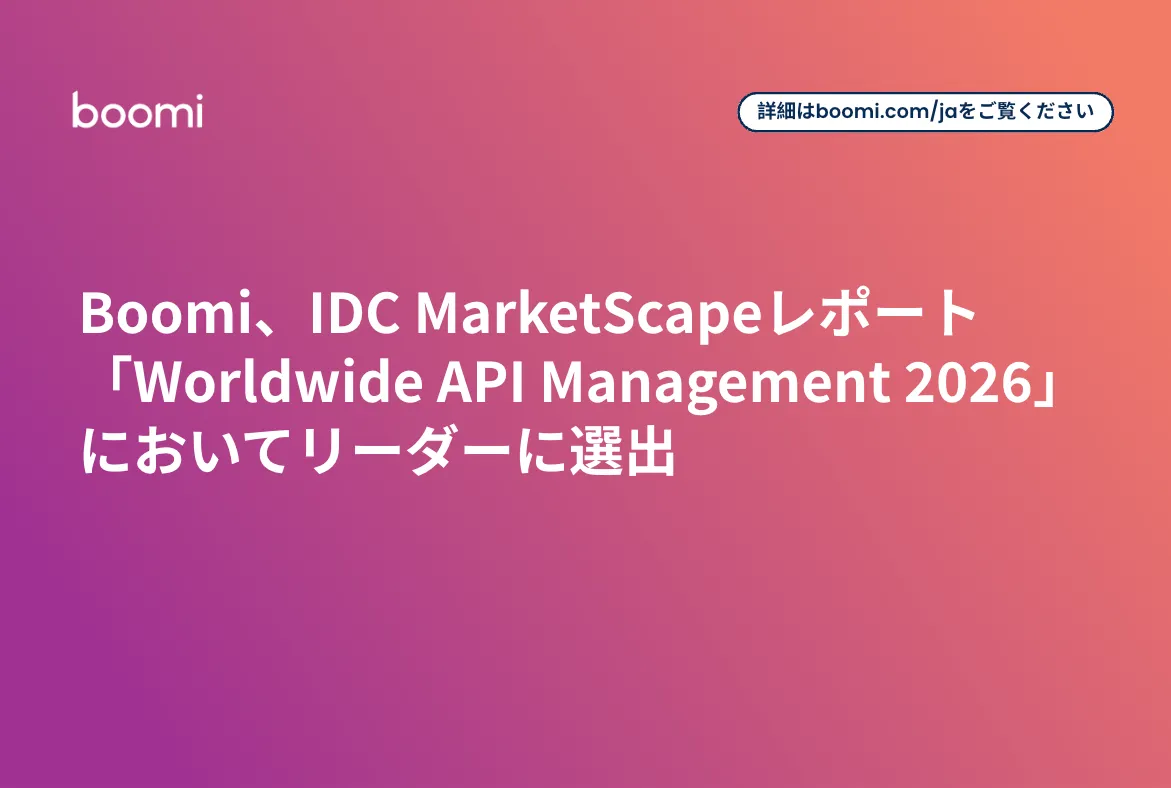 データを価値に変えることを使命としているBoomi, LP.は、最新のIDC MarketScapeレポート『Worldwide API Management 2026』でリーダーに選出されました。同社のAPI管理ソリューションは、AI駆動型のハイブリッドエンタープライズ環境において、企業のデータ活用を支える重要な役割を果たしています。Boomiは、APIがアプリケーションやデータへの安全で再利用可能なアクセスを実現するキーであると認識し、その戦略を進化させてきました。