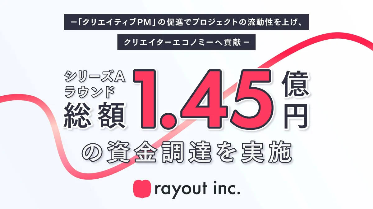 クリエイティブ領域のプロジェクトマネジメントオフィス(PMO)を提供するrayout株式会社が、このほどシリーズAラウンドにおいて総額1.45億円の資金を調達しました。これにより、2019年4月に設立されて以来、同社が累計で1.84億円の第三者割当増資による調達を完了したことになります。