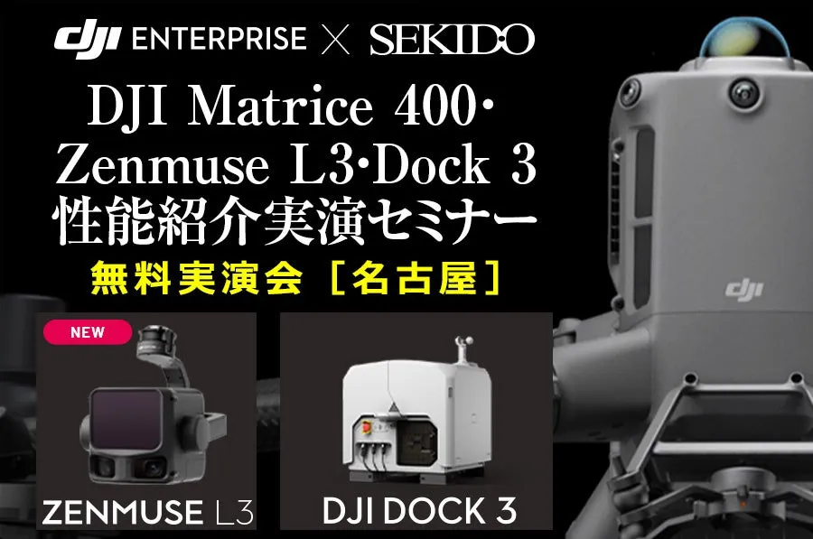 2025年12月11日㈭、名古屋にて最新の産業用ドローンセミナーが開催されます。このセミナーでは、株式会社セキドと株式会社アルマダスが共同で、注目のドローン「DJI MATRICE 400」と最新LiDARモジュール「DJI ZENMUSE L3」の性能を実演します。参加は無料ですが、事前申込が必要で、定員は20名と限られています。