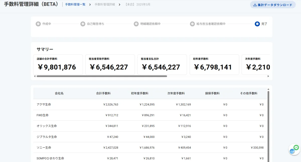 各社の手数料表に基づいた計算方法を採用しており、支給根拠を明確にします。これにより、募集人に対する説明責任が果たされるだけでなく、内部統制やコンプライアンスの強化にも寄与します。
