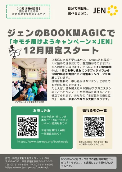 2025年12月1日から31日までの1ヶ月間、認定NPO法人ジェンが「寄付月間」に合わせて新たに始める「キモチ届けようキャンペーン」。これは、家庭で不要になった本やCD、DVDなどを使って、手軽に国際協力に参加できる仕組みです。特に、このキャンペーンは誰でも参加しやすく、社会貢献が身近に感じられる活動となっているのが魅力です。