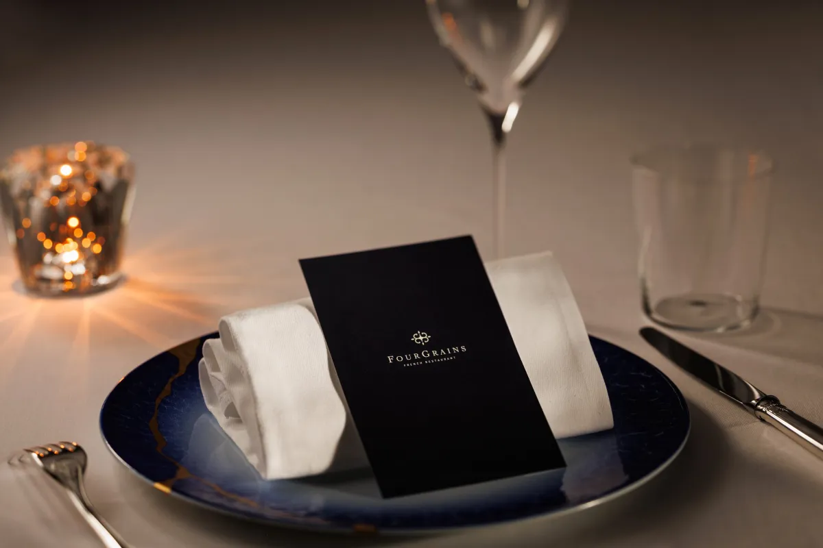 FOURGRAINSは、最大24席を配した落ち着いた雰囲気のレストランで、特別な日に最適なプライベートサロンも完備しています。ダイニングエリアでは、最大12名までのグループを受け入れることができ、さらに、2部屋あるプライベートサロンもそれぞれ6名までの小規模な集まりに適しています。