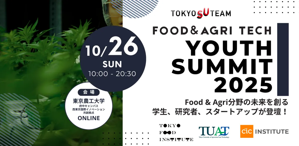 2025年10月26日(日)、東京農工大学府中キャンパス内の「邂逅館」にて、初めての「FOOD&AGRI FOODTECH Youth Summit 2025」が開催されます。このイベントは、食と農業の未来を担う若手起業家を発掘し、育成することを目的とした重要な取り組みです。主催は一般社団法人TOKYO FOOD INSTITUTE(TFI)とCIC Institute、そして東京農工大学の三者が協力しています。