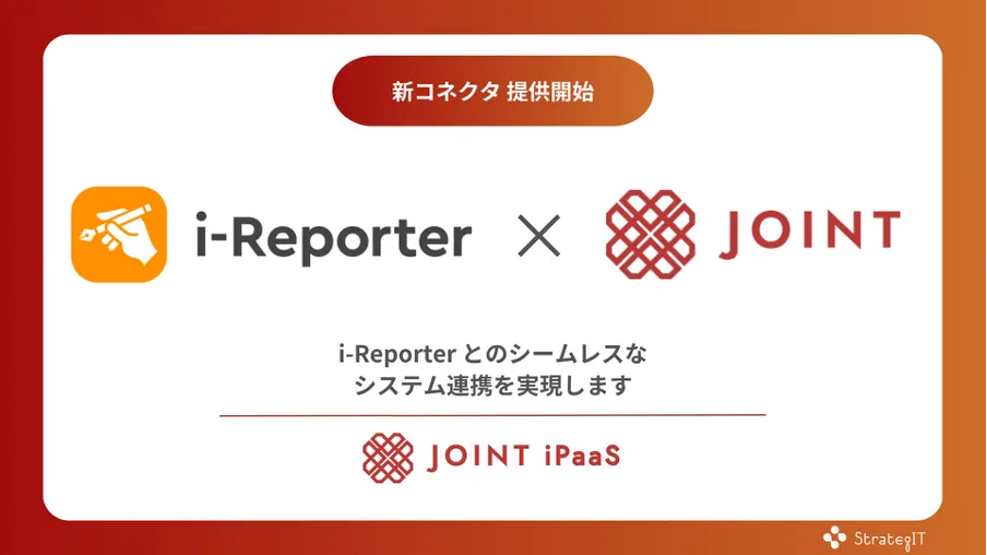 株式会社シムトップス(本社:東京都品川区)は、現場帳票システム「i-Reporter」に対し、株式会社ストラテジットが展開するSaaS連携ソリューション「JOINT iPaaS」とのコネクタを提供開始しました。この新しい連携により、現場担当者が「i-Reporter」で記録したデータを、ERPやその他のSaaSに自動でスムーズに送信できるようになります。