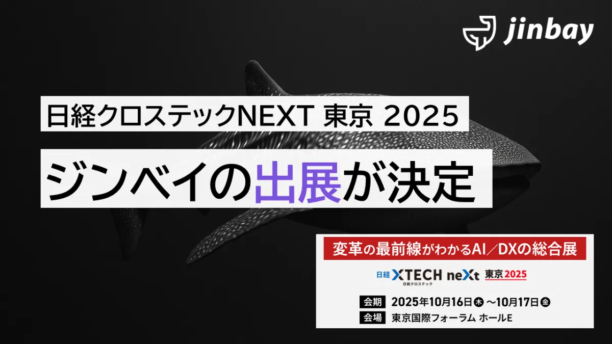 ジンベイ株式会社は、2025年10月16日(木)から17日(金)にかけて東京国際フォーラムで開催される「日経クロステックNEXT 東京 2025」に出展します。このイベントは、テクノロジーの進化がもたらすビジネスの変革を体感できるAI/DXに特化した総合展示会です。AIを中心にした最新のテクノロジーが一堂に会し、ビジネス界のキーパーソンや専門家が集まるセミナーも60本以上用意されています。