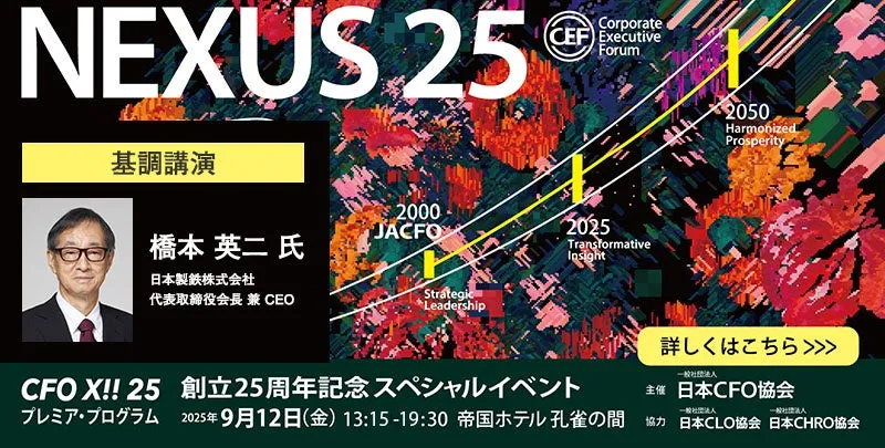 新たな地平に向けて、現場の知恵や先進的思考が結集するこの機会をお見逃しなく!日本CFO協会の創立25周年イベント、ぜひご参加ください。