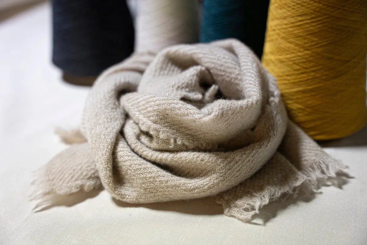 澤井織物工場でのウールストールオーダー体験