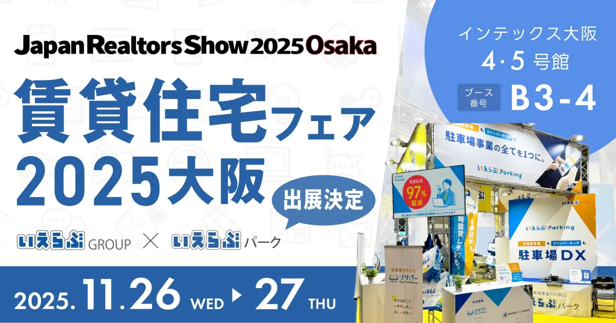 開催場所はインテックス大阪の4・5号館で、会期は両日ともに10時から17時まで。入場は無料ですが、事前登録が必要です。いえらぶグループのブース位置はB3-4にて、最先端の駐車場関連サービスを展示予定です。ぜひお立ち寄りください。