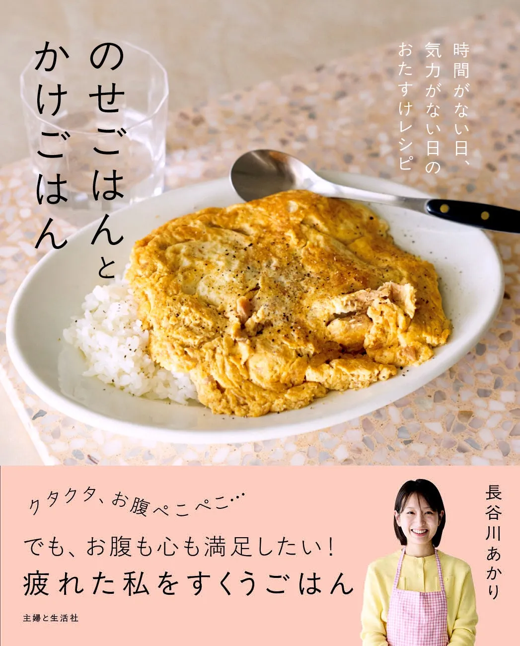 著書『のせごはんとかけごはん』では、白いごはんに「のせる」「かける」をテーマにしたレシピを集めています。たとえば、「ささみと白菜のゆず豆乳あんかけごはん」は、ダイエット中の方にもおすすめの高たんぱくでヘルシーな一品。また、「ツナクリームチーズカレー」は、手元にある材料で簡単に作れる、ちょっと贅沢な味わいが楽しめます。料理を通じて自己肯定感が高まる、そんなメッセージも感じられる内容となっています。