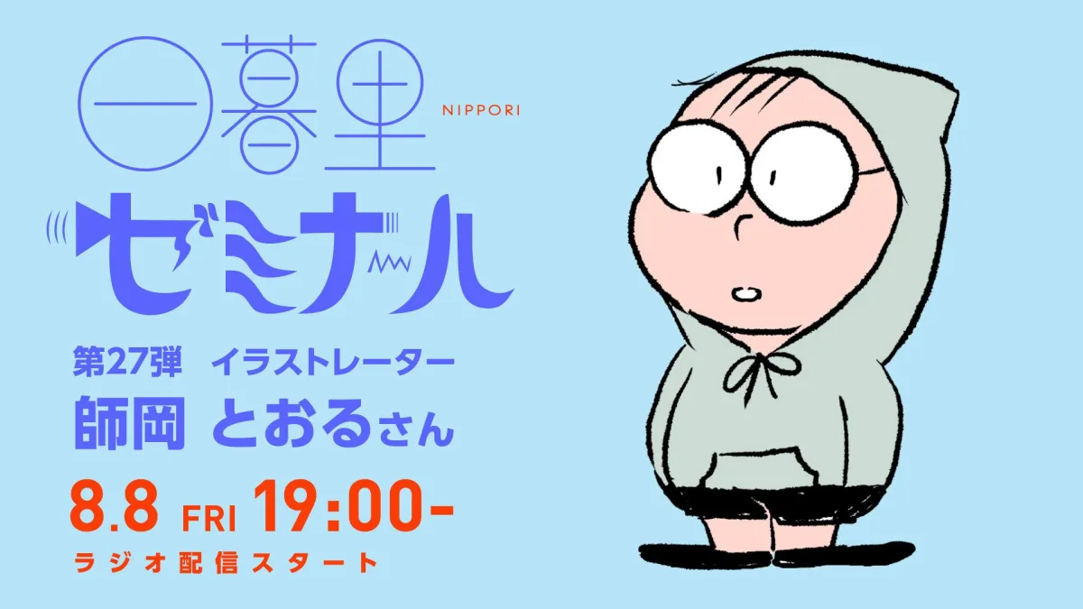 東京・日暮里を拠点としたラジオ番組『日暮里ゼミナール』は、様々なバックグラウンドを持つゲストと共に、ビジネスやカルチャーについて学ぶプログラムです。第27弾のゲストとして登場するのは、イラストレーターの師岡とおるさん。彼の独自のアート観や、現在進行中の多彩なプロジェクトについて紹介します。