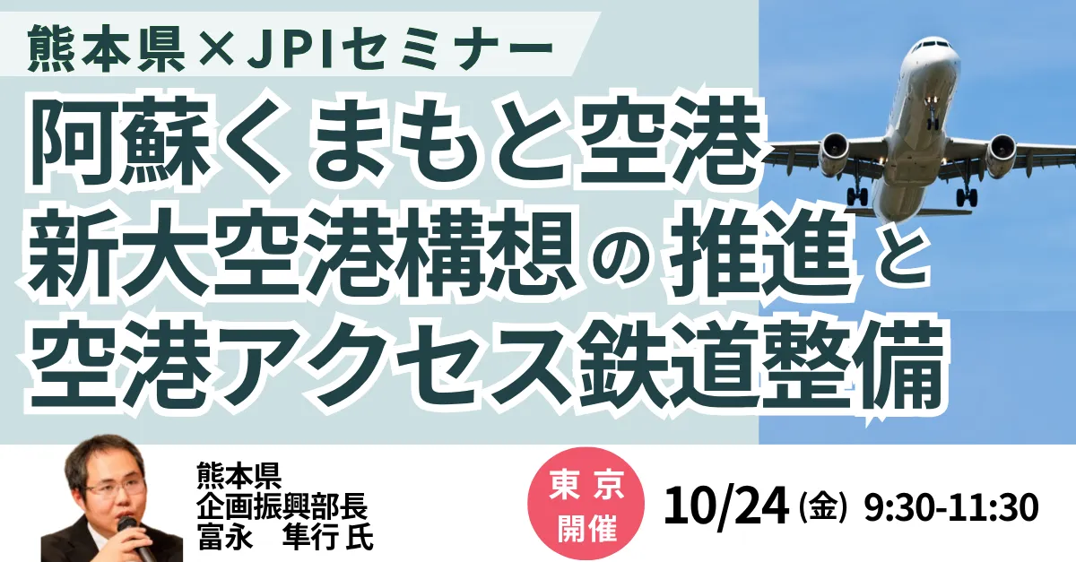 2025年10月24日(金)、東京にて、熊本県企画振興部長の富永隼行氏を招いたセミナーが開催されます。今回のテーマは、阿蘇くまもと空港の発展と新大空港構想、さらにそれに連動する空港アクセス鉄道の整備についてです。この講義では、特に熊本県の成長と発展に寄与する重要な施策が詳細に説明される予定です。