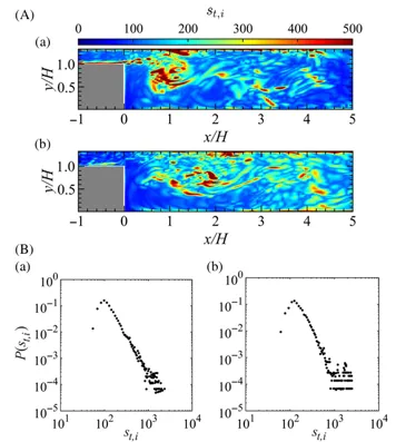 2. 乱流ネットワーク内に形成されるハブを特定し、その周辺での組織渦構造が振動の大きさに及ぼす影響を解析。