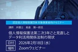 一般財団法人日本情報経済社会推進協会(JIPDEC)は、2026年2月18日(水)にオンラインセミナー「個人情報保護法第二次3年ごと見直しとデータ利活用関係法制の現状」を開催することを発表しました。本セミナーは、企業や個人情報に関わる方々に向けて、今後の法改正についての重要な情報を提供する貴重な機会です。