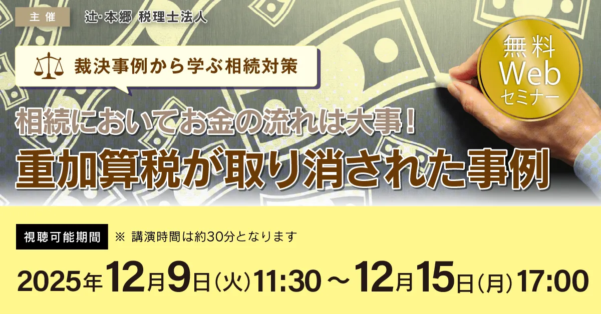 相続問題は多くの人々にとって身近な課題ですが、中でも税務に関する知識は非常に重要です。このたび、辻・本郷税理士法人が開催する「【裁決事例から学ぶ相続対策】相続においてお金の流れは大事! 重加算税が取り消された事例」という無料Webセミナーをご紹介します。
