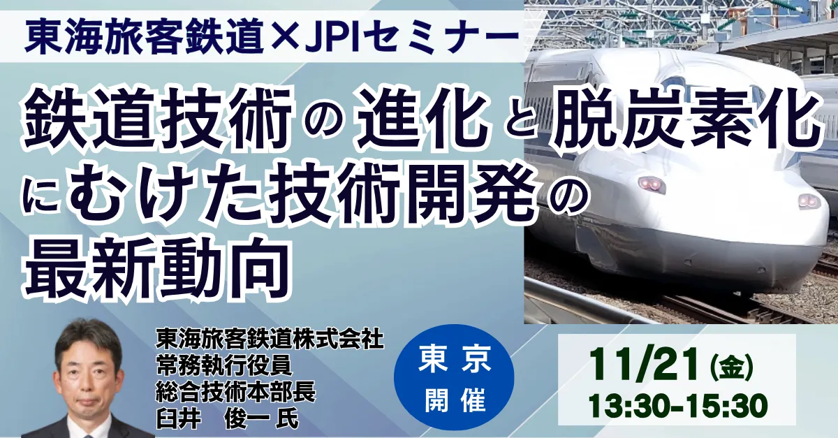 11月21日(金)、東京で"鉄道技術の進化と脱炭素化にむけた技術開発の最新動向"に関するセミナーが開催されます。本セミナーでは、東海旅客鉄道株式会社の常務執行役員であり総合技術本部長の臼井俊一氏が、鉄道技術の最新の進展とその環境負荷の低減について詳しく解説します。