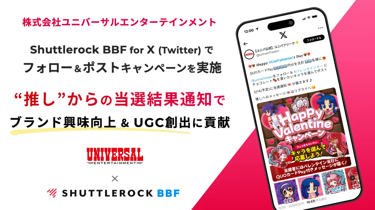 ユニバーサルエンターテインメントが新たに導入したXキャンペーンツール「Shuttlerock BBF」