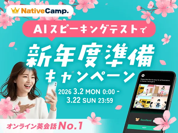 英語学習のモチベーションを高めるために、ネイティブキャンプの提供する「AIスピーキングテストで新年度準備キャンペーン」は絶好のチャンスです。この春、AIと共に新たな一歩を踏み出し、自分の可能性を広げてみませんか? 今なら特典も豊富ですので、ぜひこの機会をお見逃しなく!