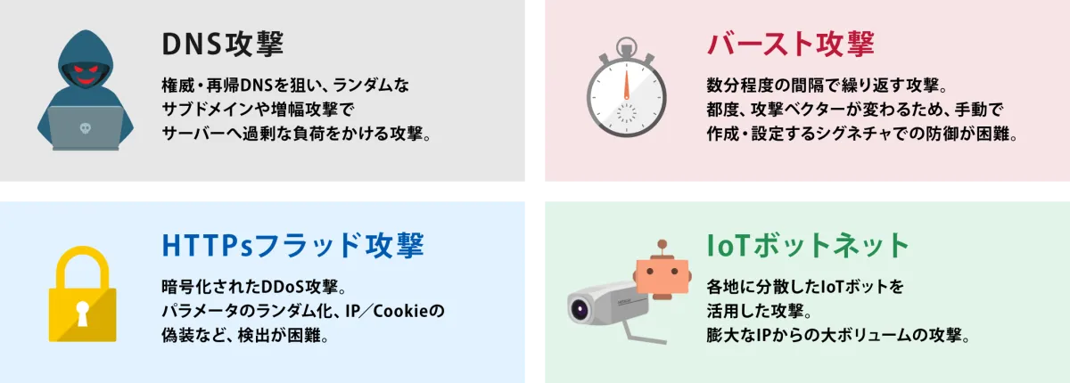 DDoS攻撃は、2023年と比較して前年比550%増という非常に急速な増加を見せ、このままでは多くの企業やサービスが影響を受けると言われています。特に日本国内では、2024年末までに大規模なDDoS攻撃が予想されており、社会インフラにも影響が出る可能性があります。こうした脅威が高まる中、企業には新たなセキュリティ対策が求められています。