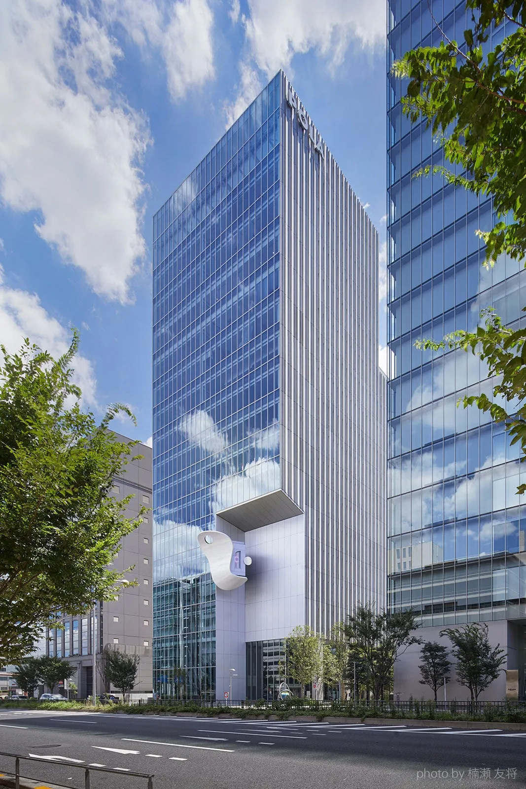 ビルは、地上16階、地下2階の構成で、延床面積は17,104㎡。周囲の大都市緑地と調和する設計がなされており、アートを取り入れた空間デザインは、使用者の感性を刺激します。