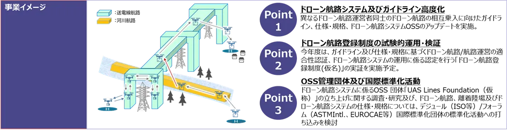 ドローン航路相互乗り入れの確立:複数の事業者によるドローンの相互乗り入れを可能にする航路システムを構築します。