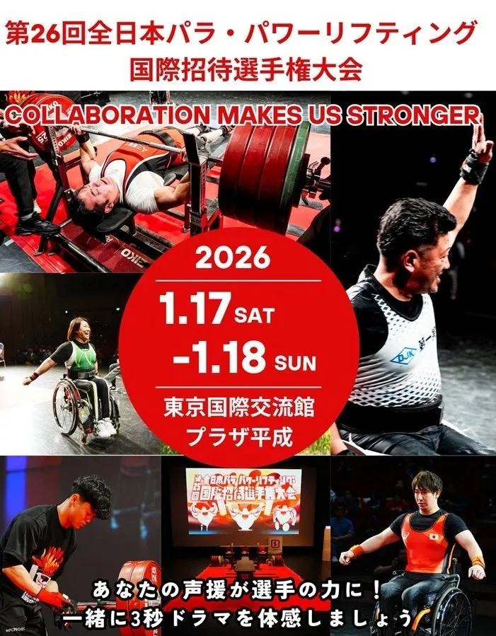 2026年1月17日(土)から18日(日)にかけて、東京国際交流館 プラザ平成にて第26回全日本パラ・パワーリフティング国際招待選手権大会が開催されます。