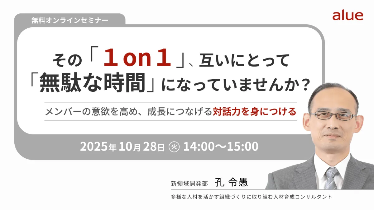 二つ目のセミナーは、「その「1on1」、互いにとって「無駄な時間」になっていませんか?」というテーマで、10月28日(火)に予定されています。これは多くの企業が取り入れている「1on1ミーティング」の意味を再考する機会です。多くのマネージャーが、ただの進捗確認になりがちなこのセッションを高い効果を持たせるためのテクニックを学べます。
