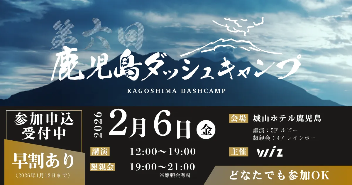 2026年2月6日(金)、鹿児島の地で「第6回 鹿児島ダッシュキャンプ」が開催されます。このビジネスカンファレンスは、地域活性化と新たなビジネスチャンスを懸けた巨大なイベントです。