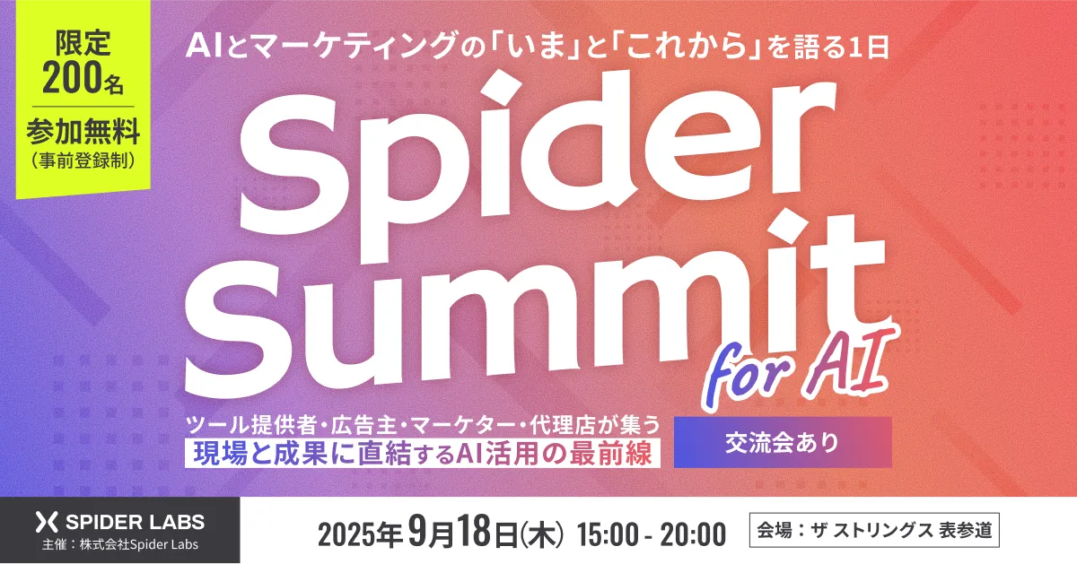 2025年9月18日、株式会社Spider Labsが主催した「Spider Summit for AI」が開催されました。国内のアドフラウド対策ツールである「Spider AF」を提供するこの企業は、AI技術をマーケティングに応用する最前線での戦略を探求。オンラインとオフラインを合わせて250名以上の参加者が集まり、AIの可能性とリスクについての深い議論が交わされました。満足度は85%を超え、その理由に迫ります。