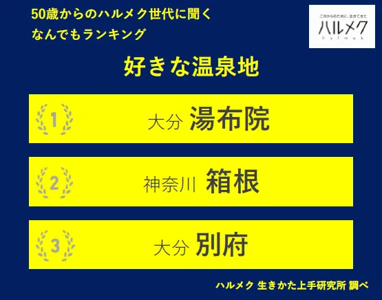 最近の調査により、50歳以上の女性にとっての「好きな温泉地」が分かりました。調査はハルメク生きかた上手研究所が行い、506名から546名に対してリサーチ。結果として選ばれた人気温泉地TOP3は、1位が大分の「湯布院」、2位が神奈川の「箱根」、そして3位が同じく大分の「別府」でした。これらの温泉地について、その魅力を深掘りしていきましょう。
