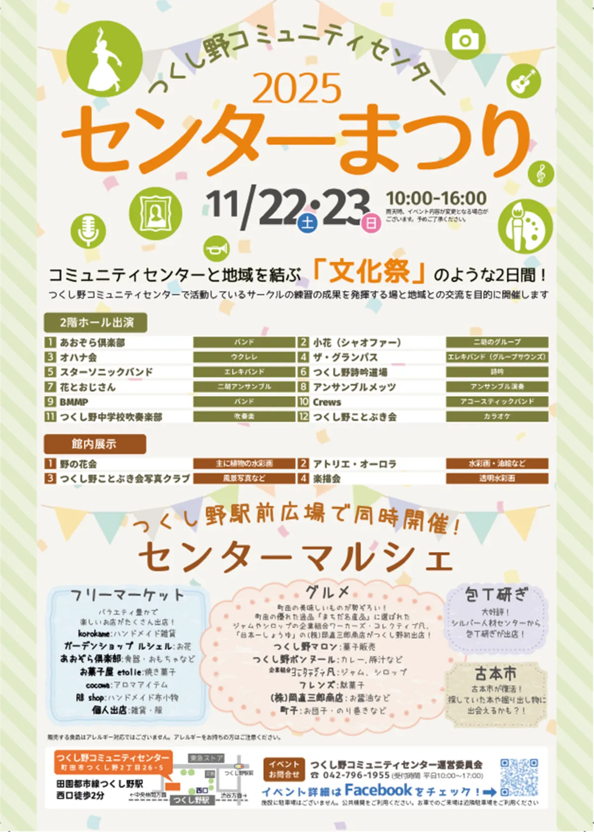 2025年11月22日(土)と23日(日)、東京都町田市のつくし野コミュニティセンターで開催される「つくし野コミュニティセンターまつり」。このイベントは、地域活動の活性化と交流の促進を目指し、毎年恒例の行事として地域住民に親しまれています。