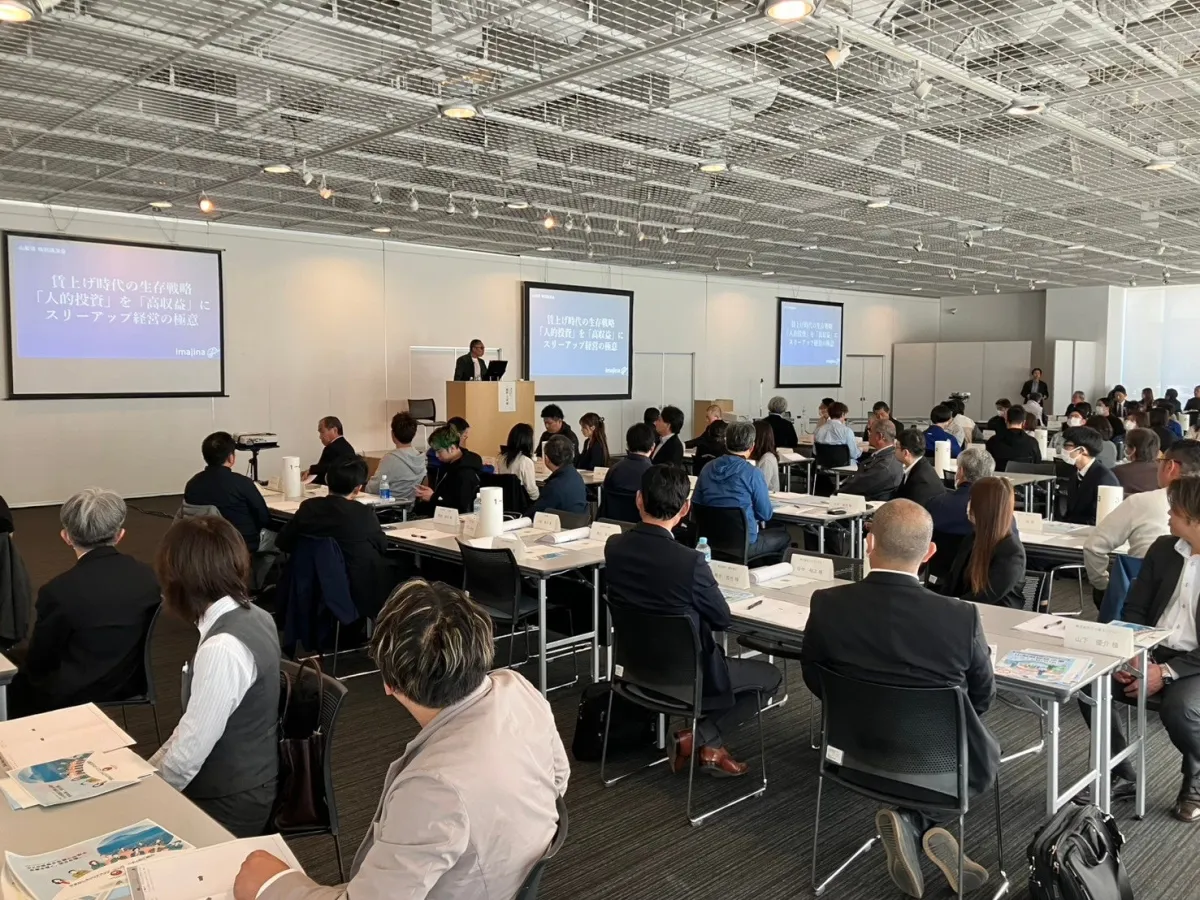 2026年2月26日、山梨県立図書館にて特別なセミナー「賃上げ時代の生存戦略」が開催され、150名の経営者やリーダーが参加しました。このイベントは株式会社イマジナと山梨県の共催によるもので、賃上げを「コスト」ではなく「投資」と捉え、持続的成長につなげる「スリーアップ経営」の極意が披露されました。