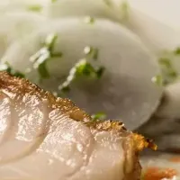 - - 魚料理: 旬魚と根菜のエチュベ サフラン風味のコンソメ
